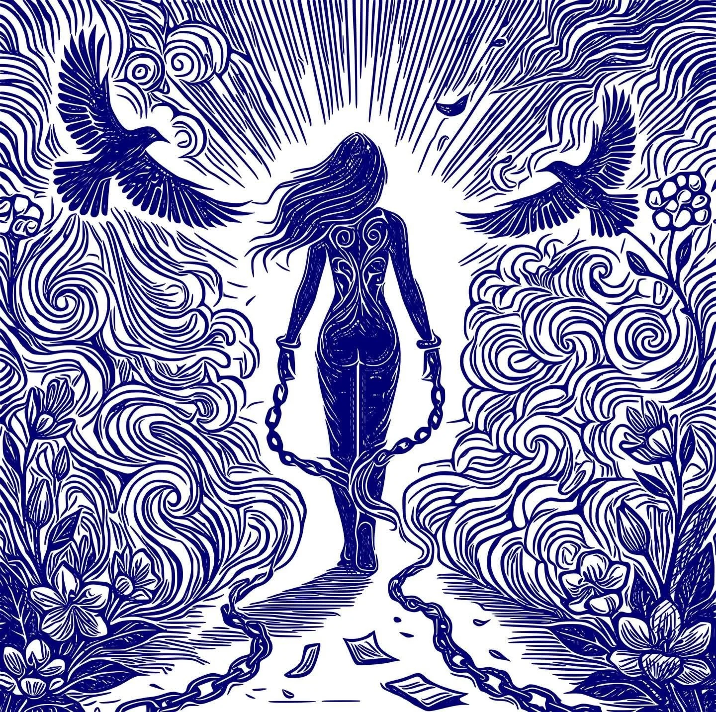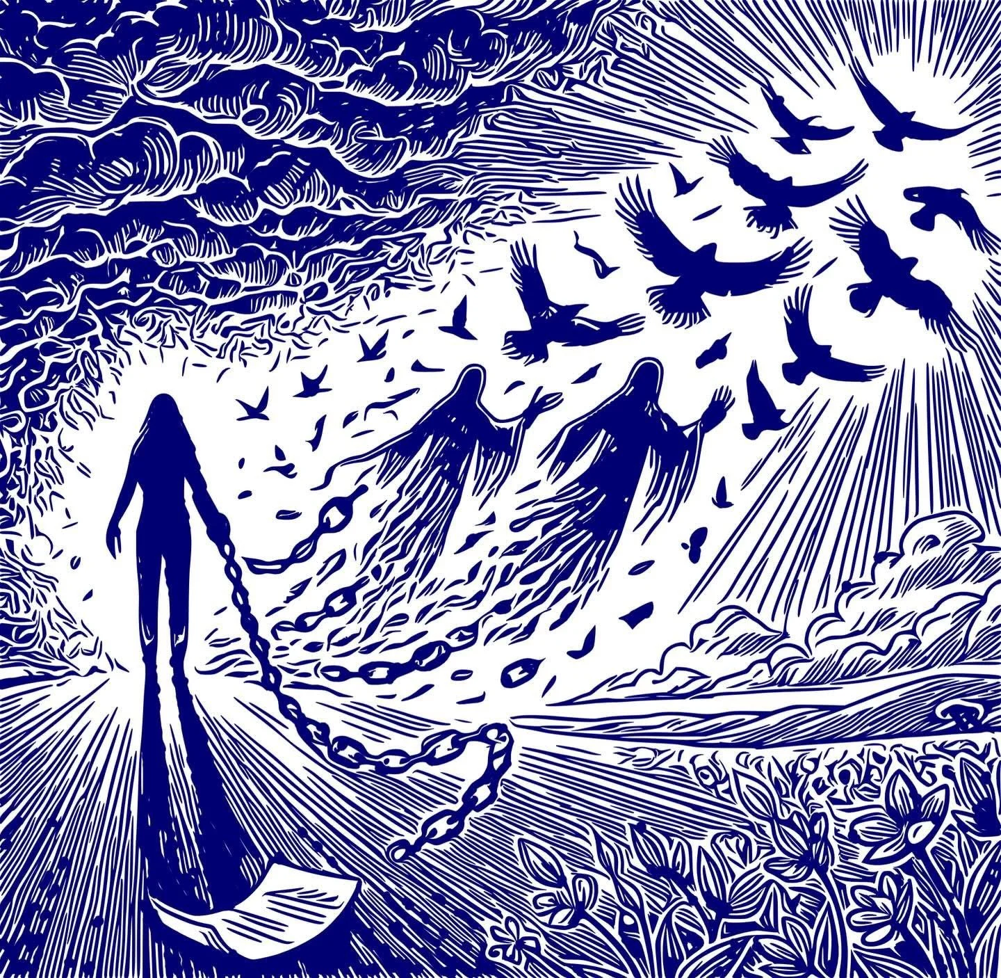 This linocut centers on the human body as a sacred site where healing, liberation, and inner awareness converge. It functions as a kind of visual ritual, inviting the viewer to witness, reflect, and perhaps locate their own sense of “sanctuary within.”